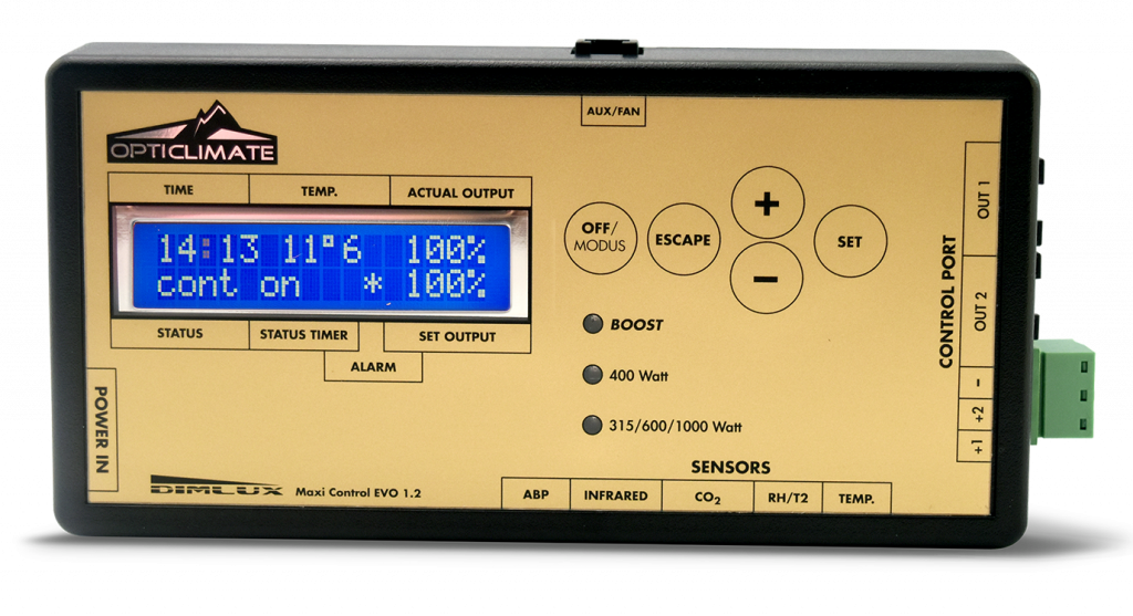 The lamps are dimmed automatically when the temperature exceeds a maximum predefined level. Dimlux ballasts used in combination with a OptiClimate Maxi Controller also offer many other functions and options.