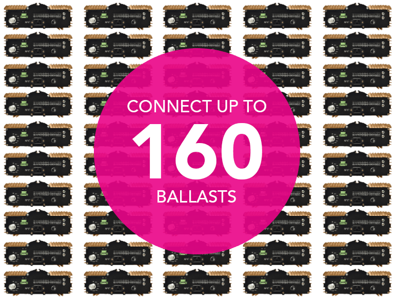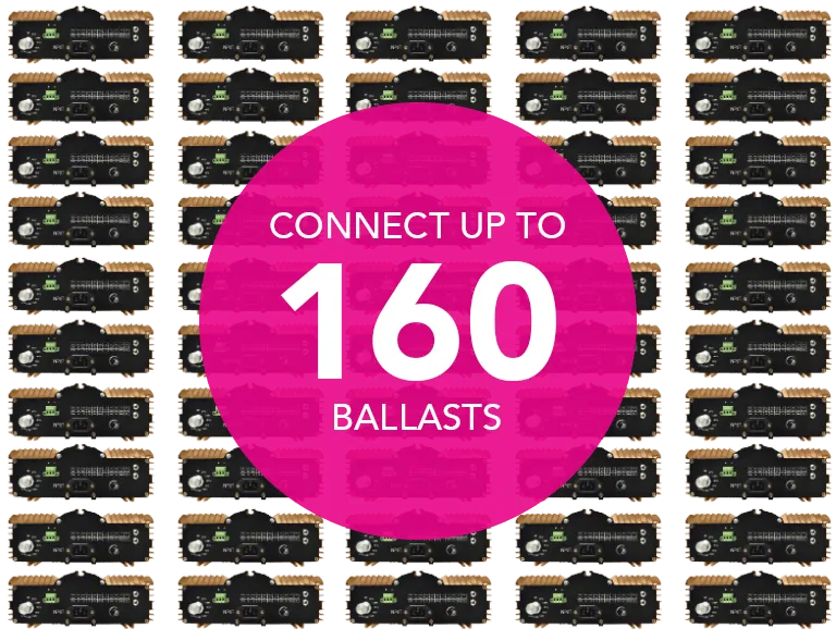 A maximum of 160 Dimlux ballasts can be connected to 1 Maxi Controller. The Maxi Controller can adjust the output according to the ambient temperature.