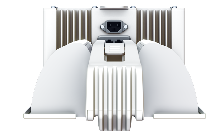 Provided with adjustable side reflectors for better overlap and to minimize wall losses. Due to the open design of the reflector the lamp is passively cooled which is a benefit for the life and efficiency of the lamp. There is a 50mm socket on the reflector which can be used to significantly reduce the room temperature by actively extracting the air. There are also optional add-on reflectors available which be placed to minimize the wall loss even more. This reflector is replaceable.